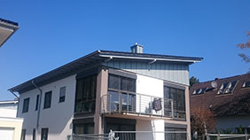 Mehrfamilienhaus inklusive Dacheindeckung in Wesselingen. Dachgeschoss verkleidet mit Zink-Stehfalz.