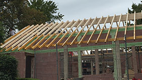 Fertigung und Aufschlag des kompletten Dachstuhls der Friedhofshalle in Mammelzen.